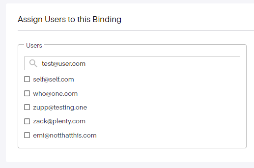 Below that, we see the option to assign user(s) to this binding by simply selecting the appropriate checkbox next to the user.
