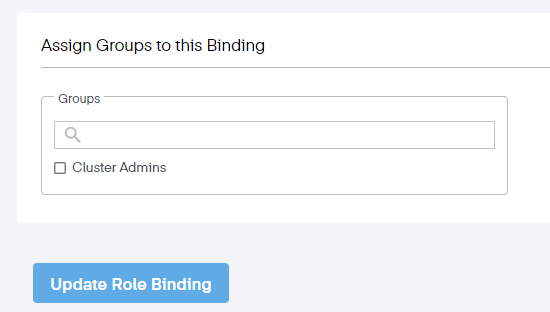 Below that, we have the option to assign specific groups, including cluster administrators, to a binding.