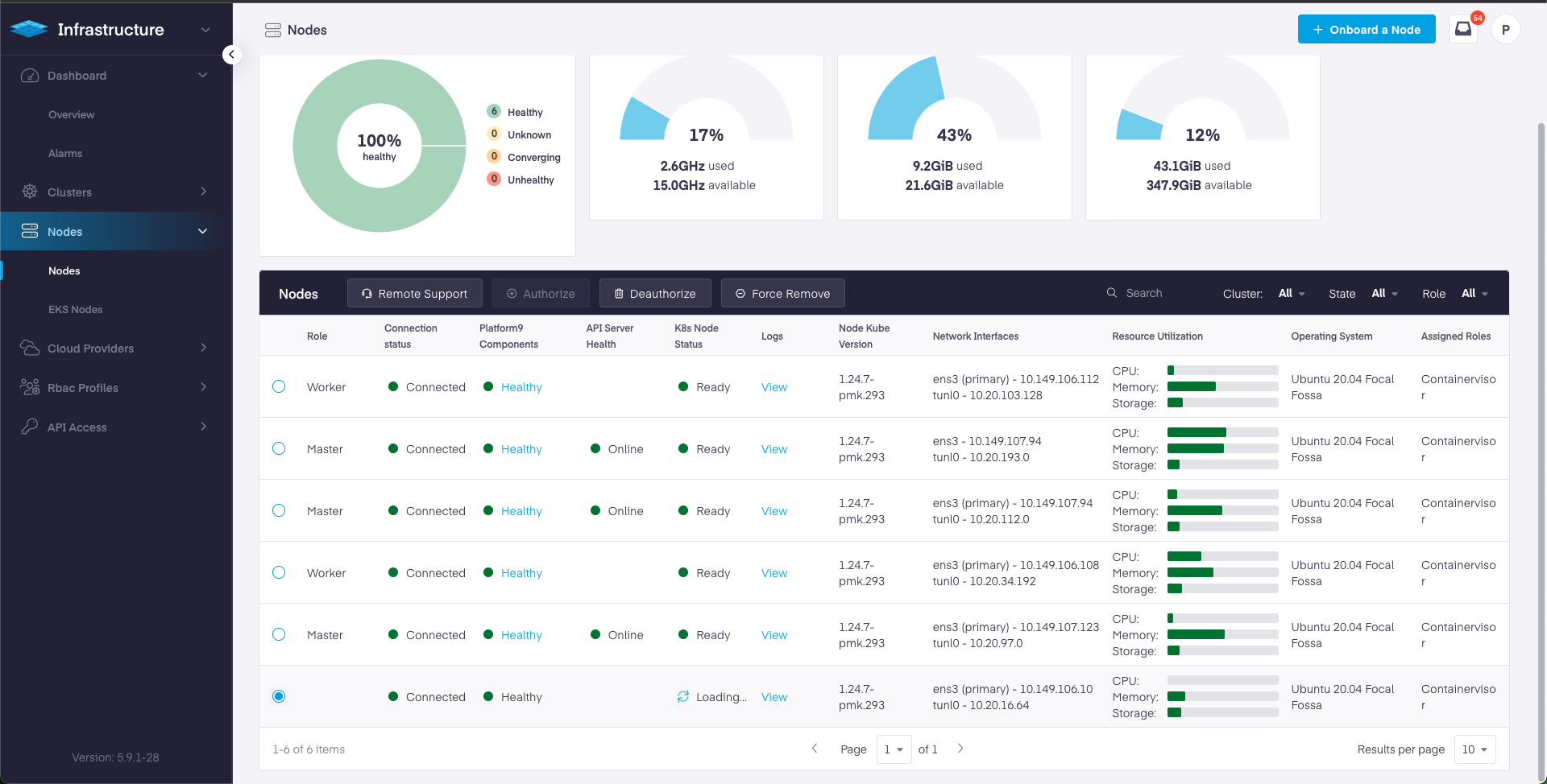 * Please note that the de-authorized node will keep appearing in the UI until the platform9 packages are cleaned from the node. This also means that the node can no longer be used with another cluster in this Management Plane until it is authorized again.