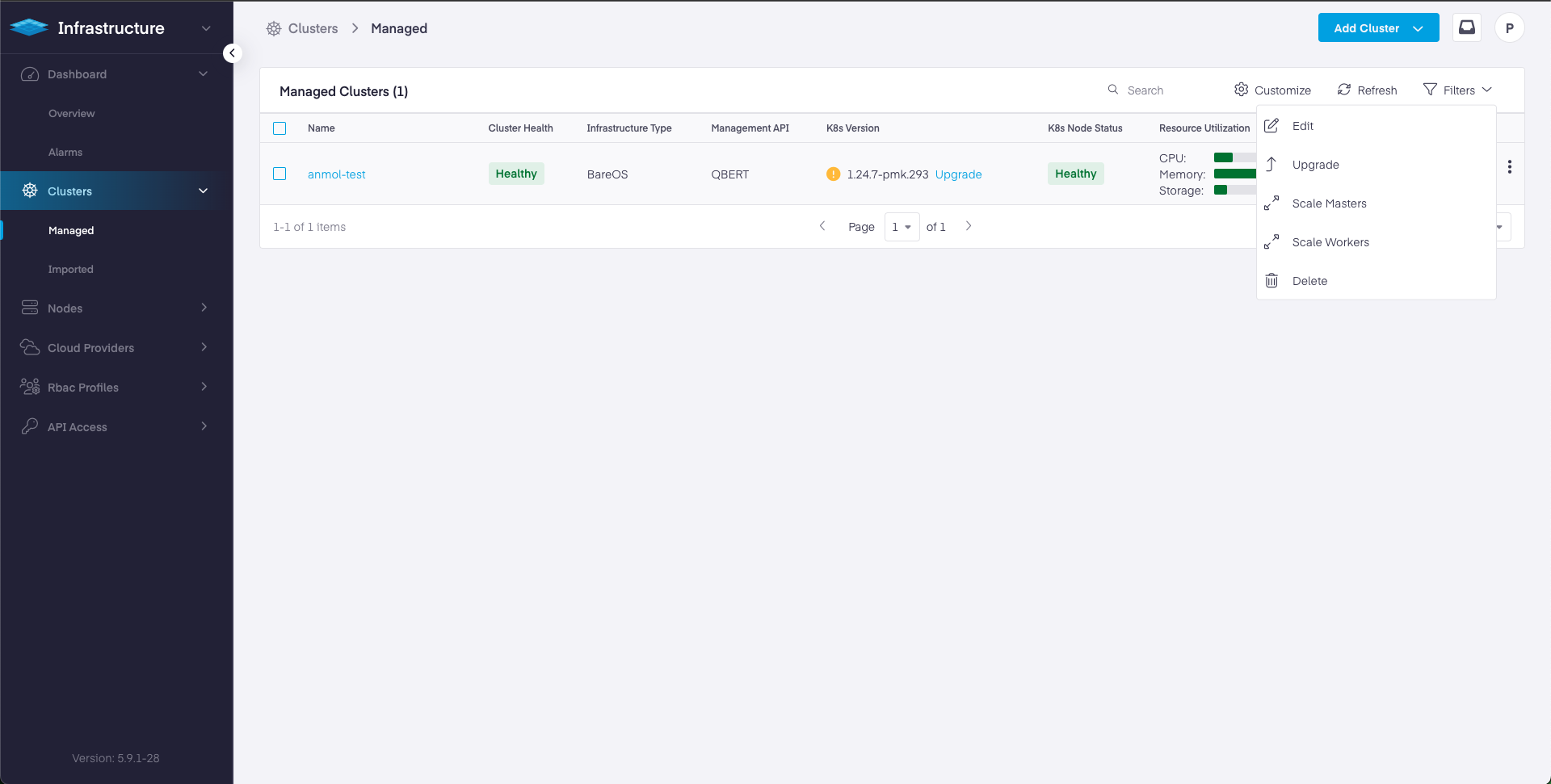 * Navigate to Infrastructure > Clusters > Managed