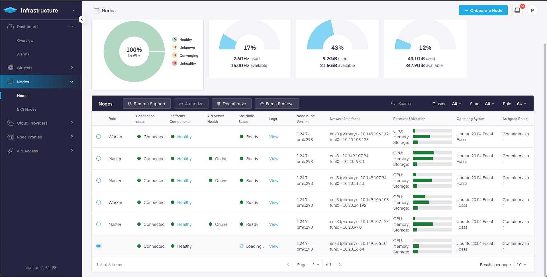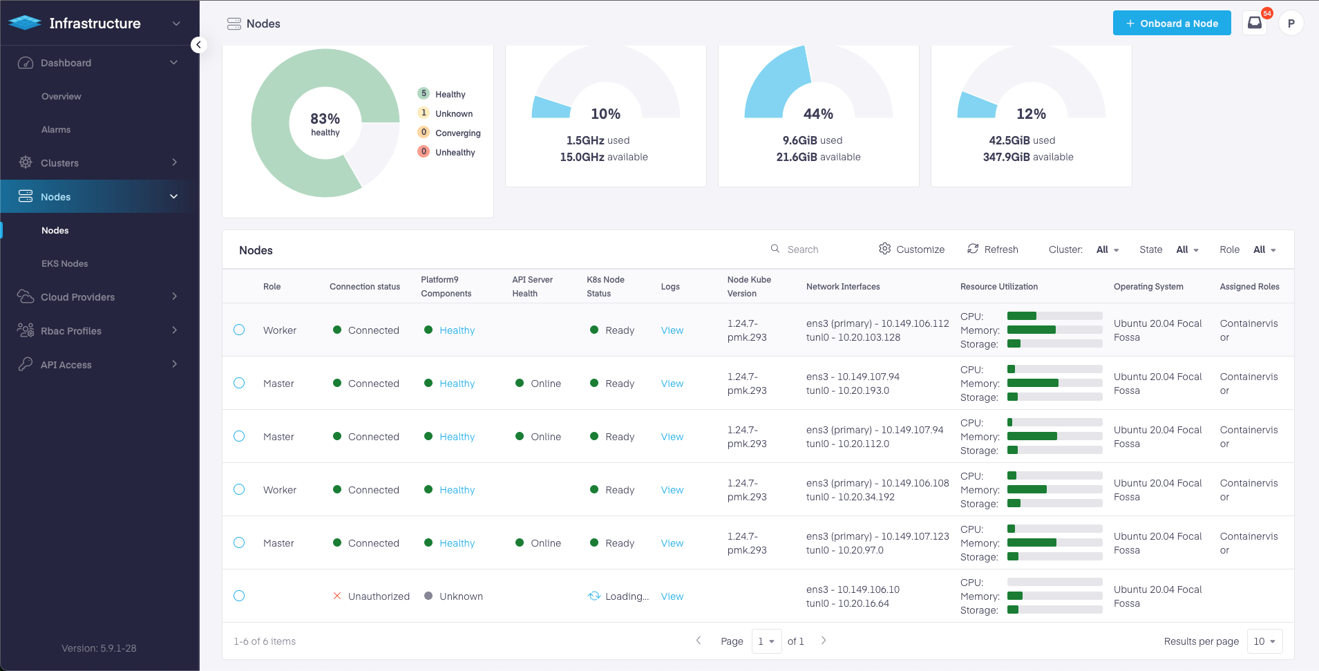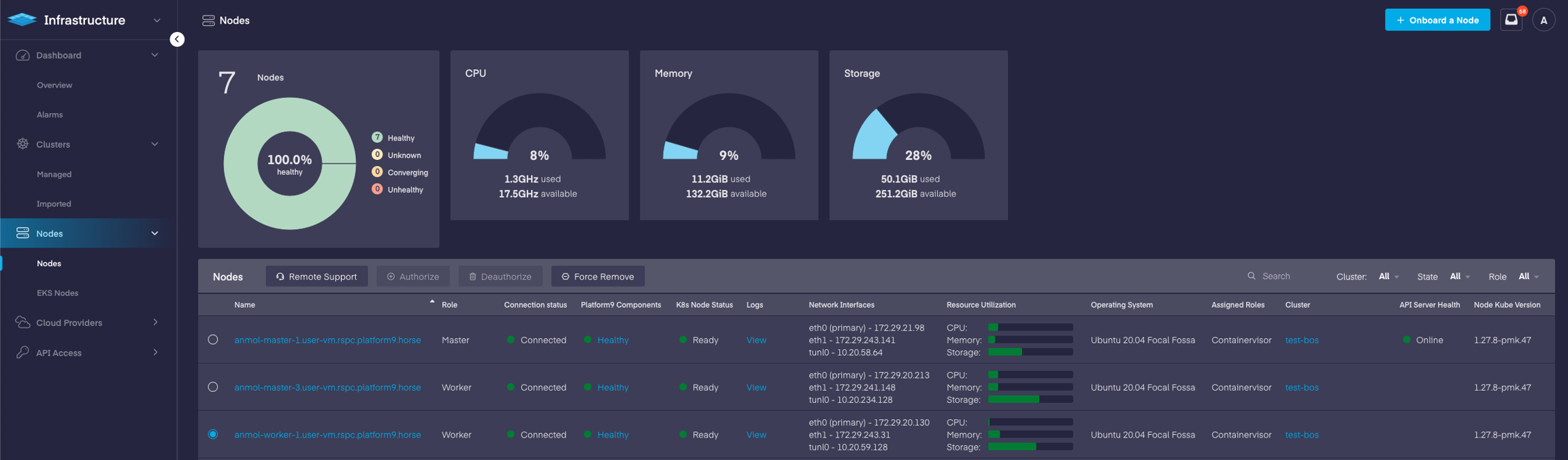 Please note that the de-authorized node will keep appearing in the UI until the platform9 packages are cleaned from the node. This also means that the node can no longer be used with another cluster in this Management Plane until it is authorized again.
