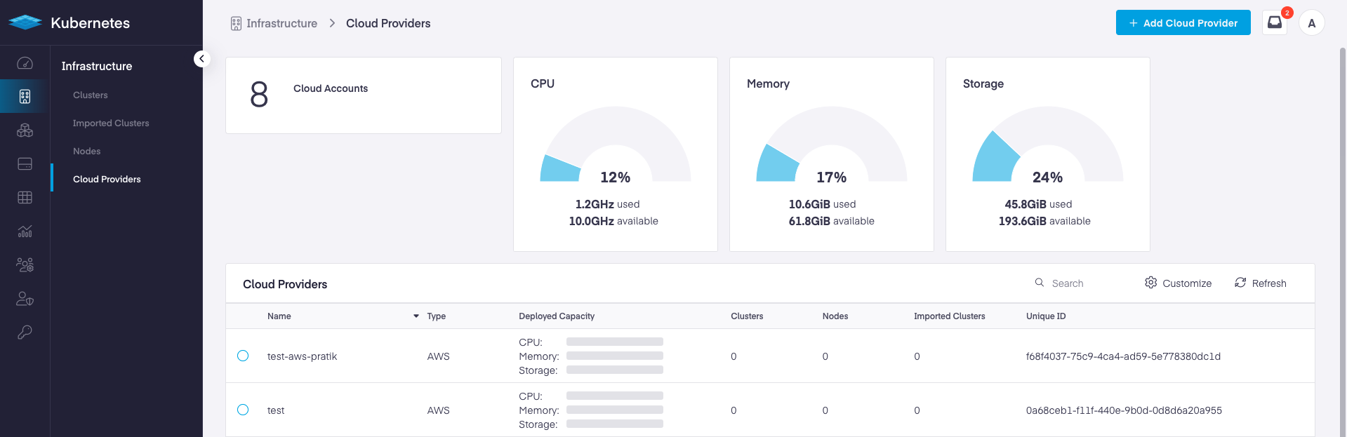 "Complete" to create your new cloud provider and be directed back to the cloud providers listing.
