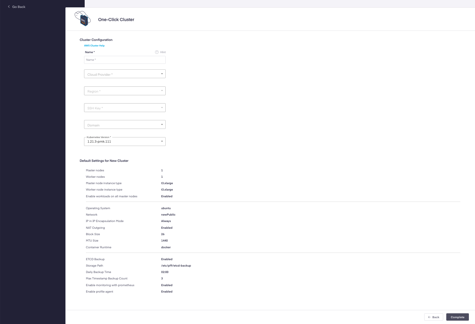 "Complete" to begin the creation of your new cluster.
