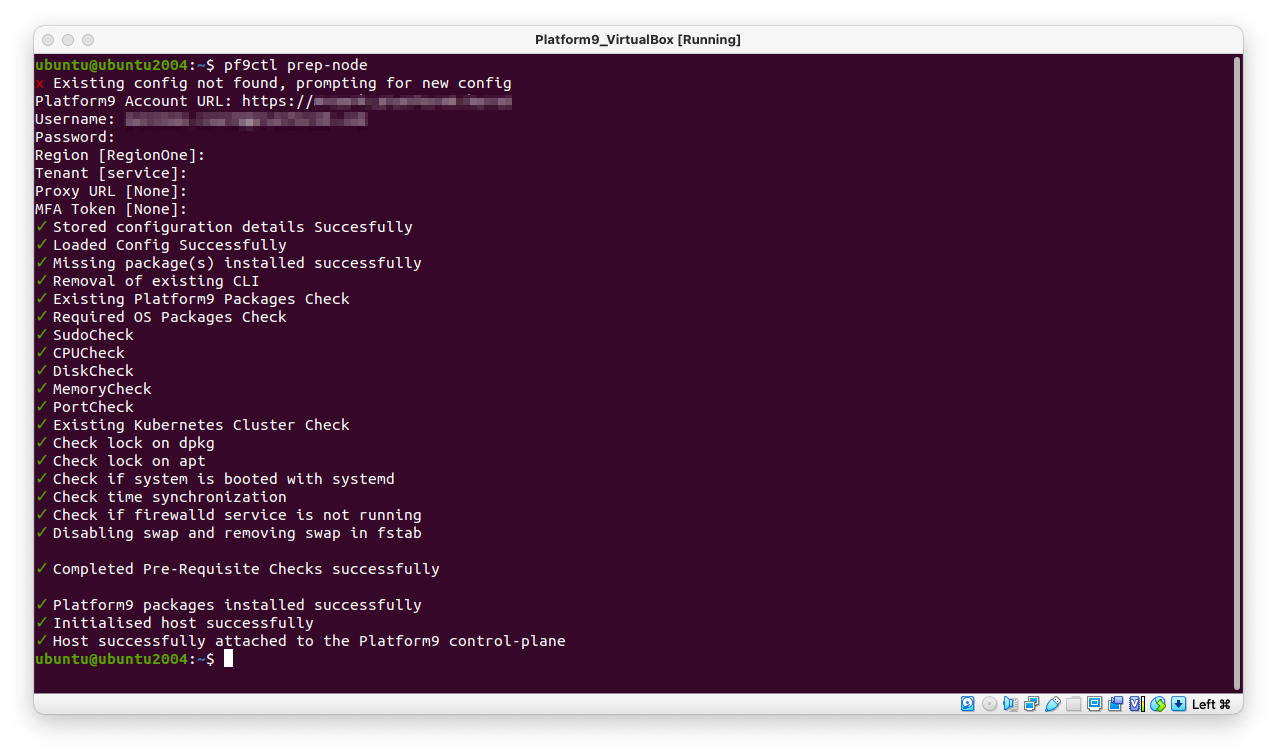 The installation is now complete and the host is successfully attached to the Platform9 control-plane.