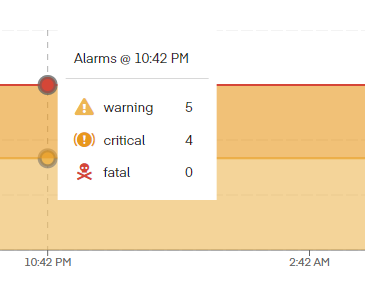 Additionally, the graphical representation can be viewed that defines the monitoring timeframe set on the far right. Running the mouse over the graph shows the number of alarm types within a window of time.