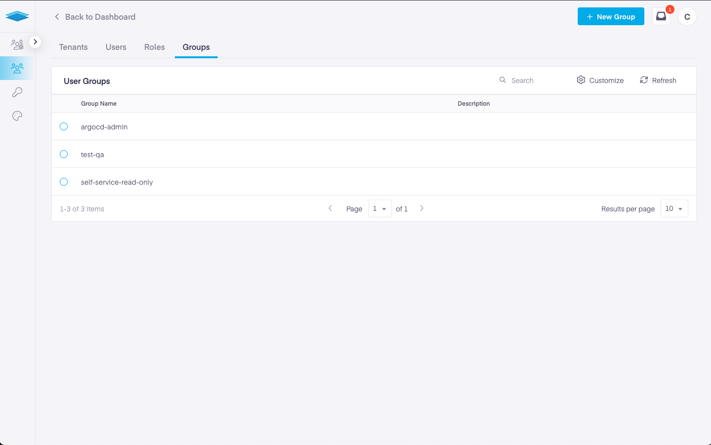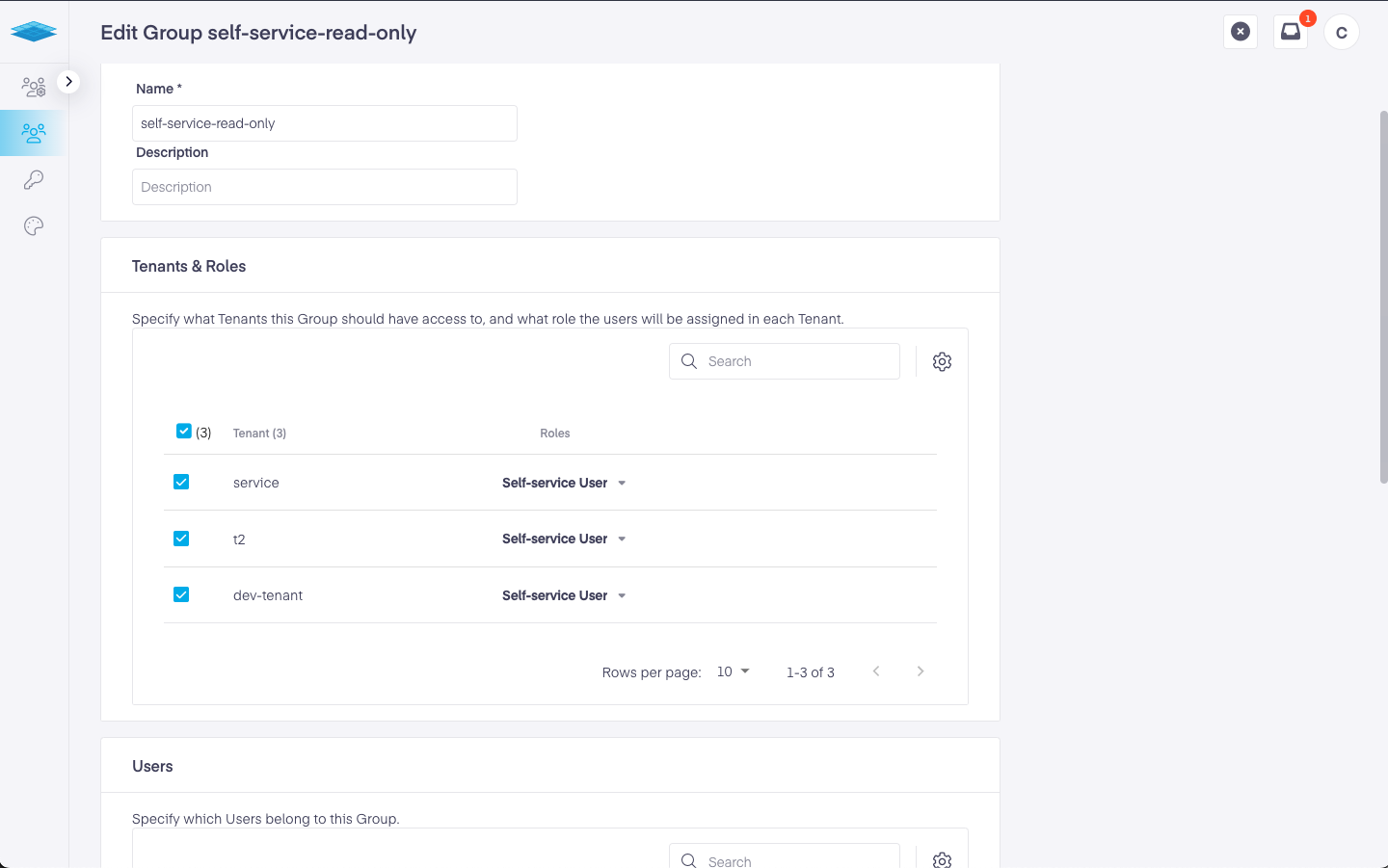 To create or edit a group navigate to Tenants & Users -> Groups tab.