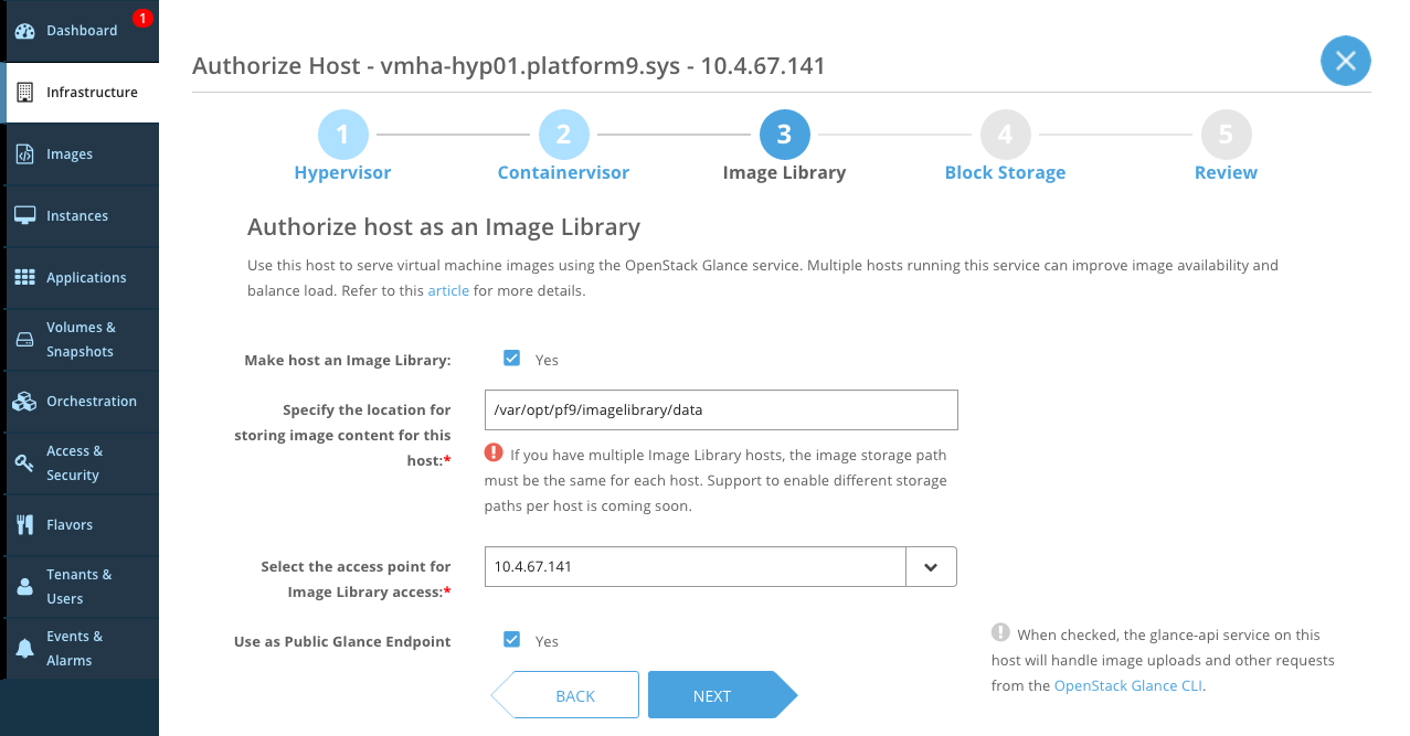 Each Linux server added to PMO can be authorized to run different roles. For example, if you want to run virtual machine on a host, that host should be assigned the Hypervisor role. Note that you must designate at least one server with the Image Library role. Doing this enables PMO to utilize the storage associated with that server to create an OpenStack Glance-based image catalog.