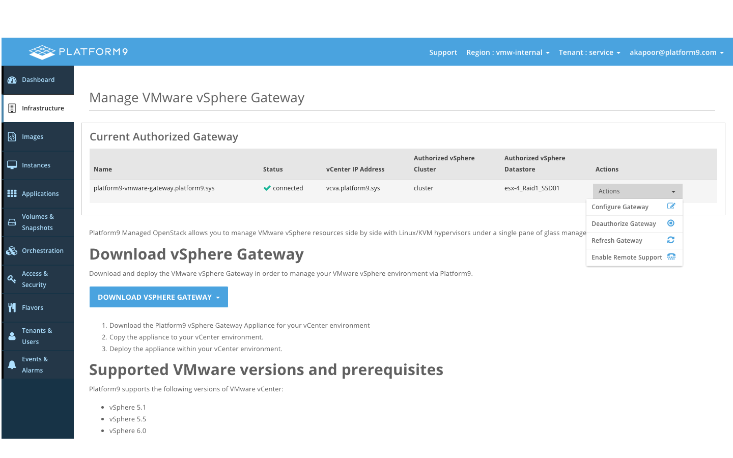 That's it! Deauthorizing the VMware Gateway will remove the association between Platform9 and your VMware vCenter server. Again, all your data remains untouched.