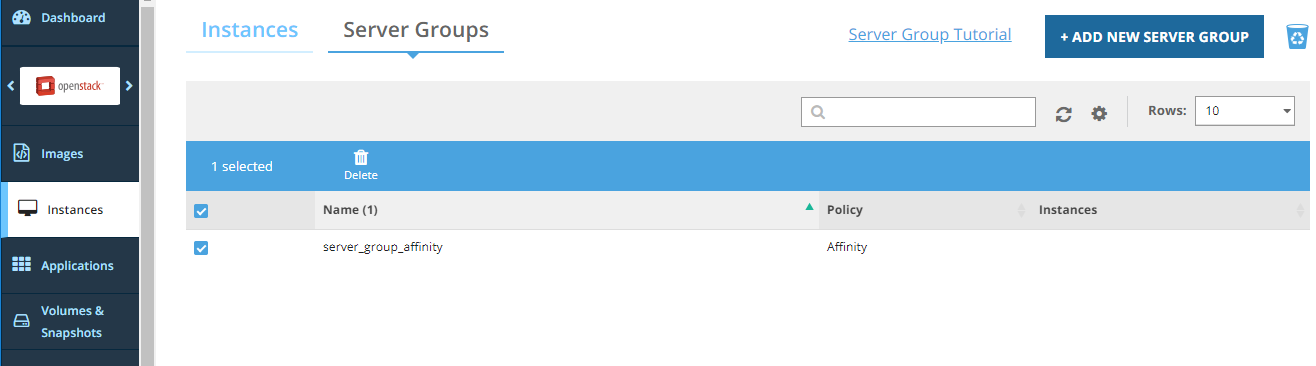 4\. Select the server group to delete.