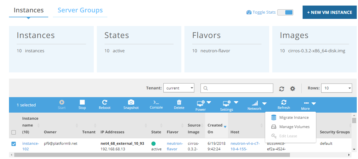 4\. Click More>Manage Volumes on the toolbar seen above the list of instances.