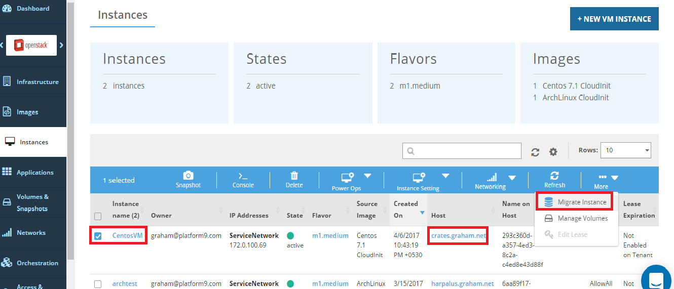 Once the host preparation is complete, you are ready to perform a live migration of VM instances on Platform9 Managed OpenStack.