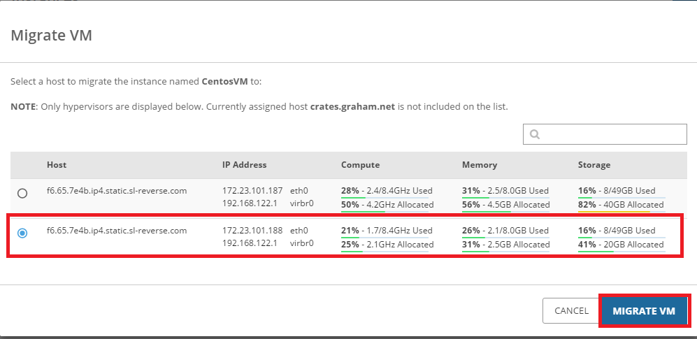 Live migration is a simple two-step process when it is performed by using the Clarity UI.