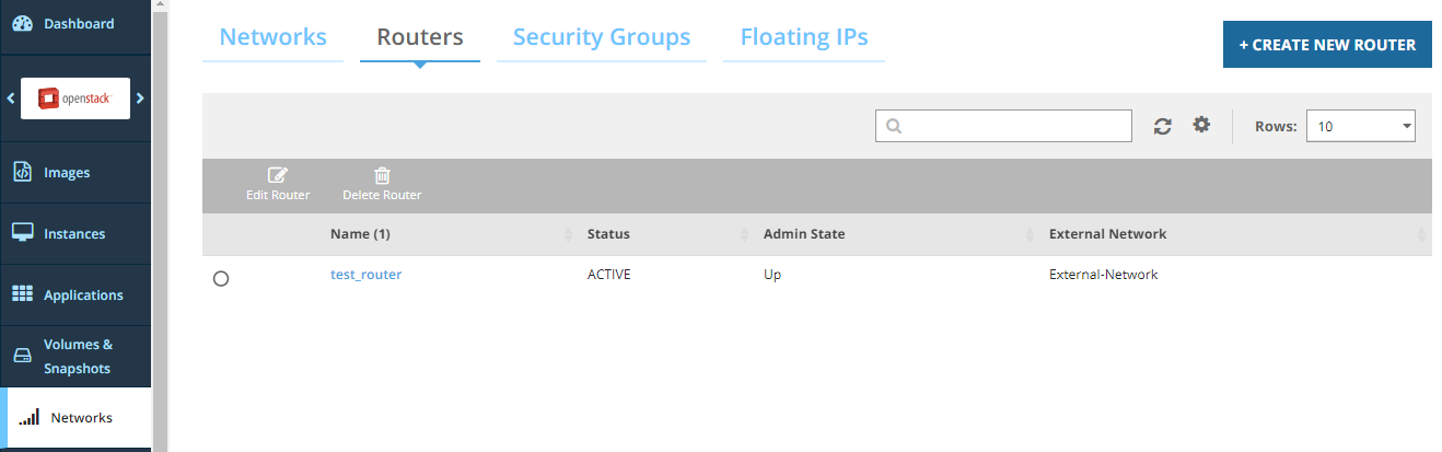 The Neutron router is created. The router starts automatically once the router is created successfully.