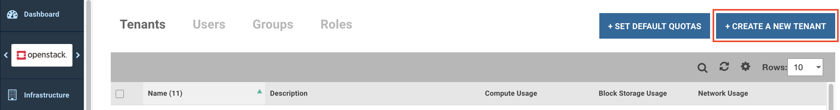 To create a tenant, follow the steps given below.