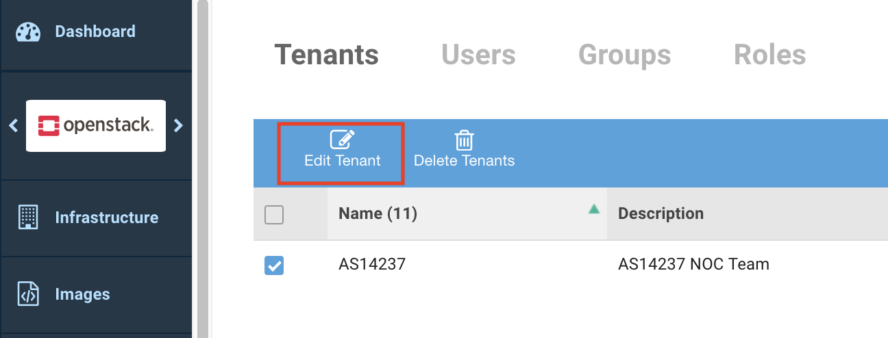 5\. Click Edit Tenant on the toolbar seen above the list of tenants.