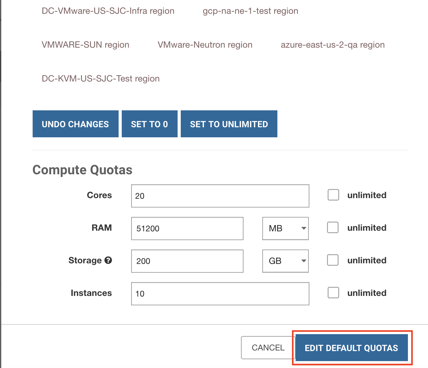 6\. Click Edit Default Quotas.