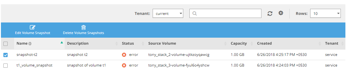 4\. Select the checkbox for the volume snapshot to edit from the list of volume snapshots.