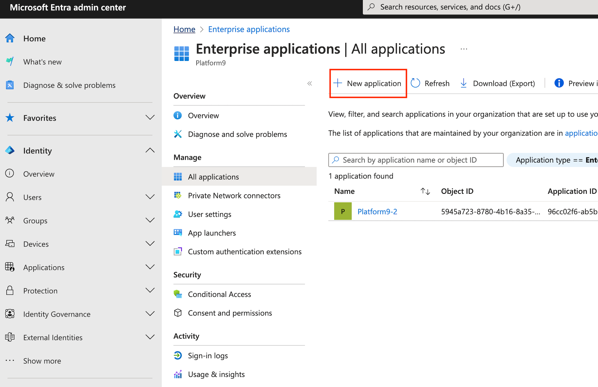 Create a new enterprise application in Microsoft Entra ID to handle the SSO integration.