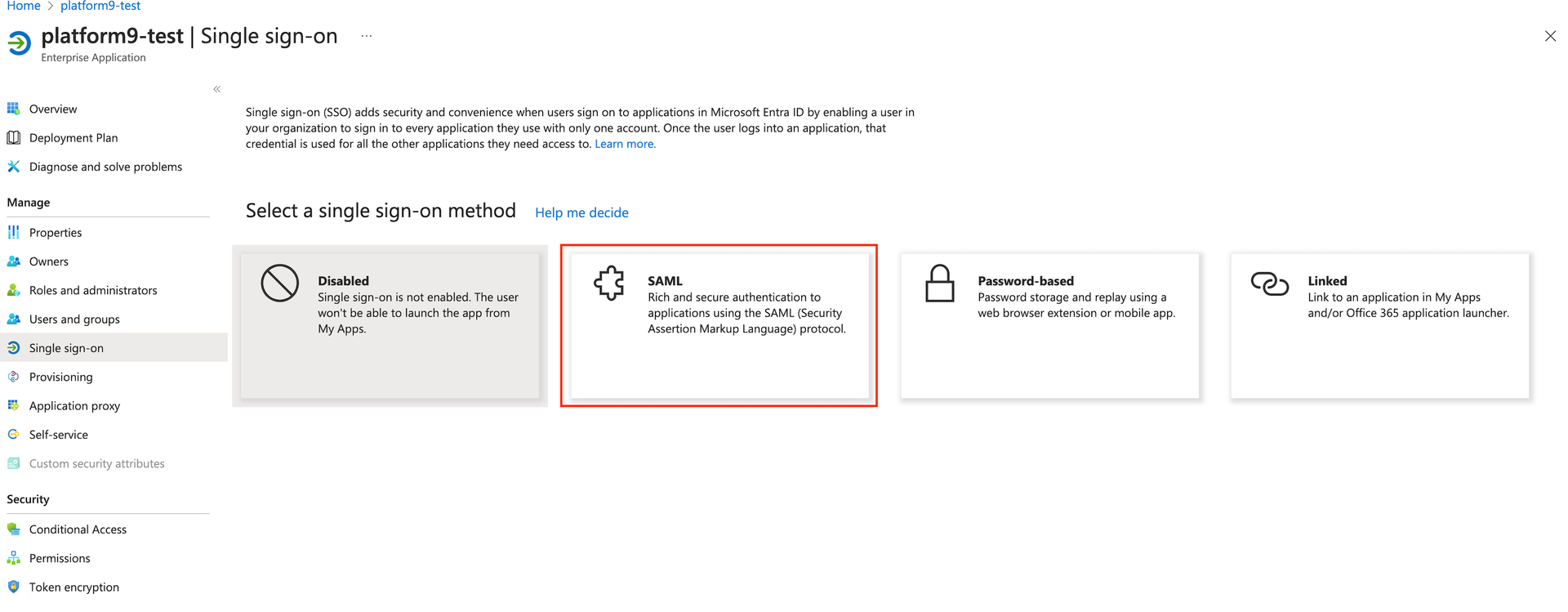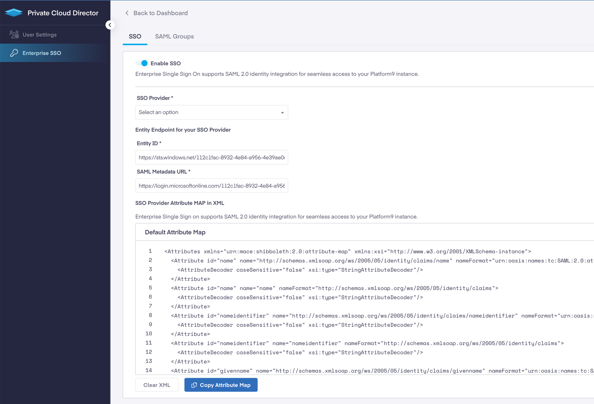 Enable SAML single sign-on for your enterprise application and configure the connection settings between Entra ID and your Private Cloud Director environment, while assigning user account to the application.