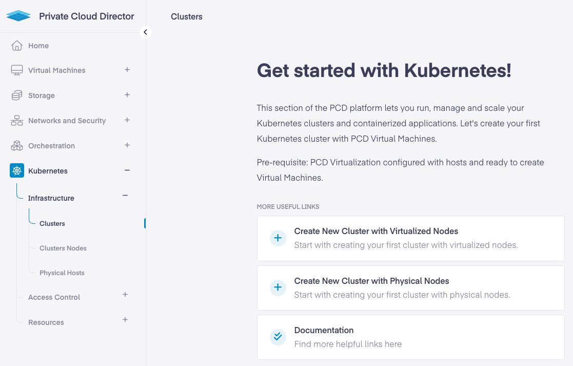 Log in to the PCD UI and click on the Kubernetes menu entry: